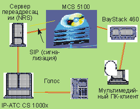 | Рисунок 4. Организация мультимедийного рабочего места в архитектуре Nortel Networks. |