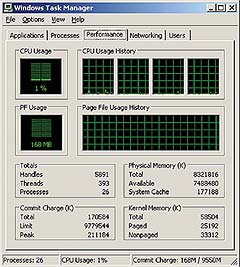 Объем оперативной памяти тестового сервера составил 2 Гбайт, в качестве операционной системы была установлена Solaris 8. Помимо этого, в пакет поставки входили два разъема для подключения к локальной сети: Gigabit Ethernet и Fast Ethernet. К ним надо добавить разъем локальной сети для обслуживания и управления системой (System Control Facility, SCF), а также два порта USB и два последовательных порта. В общей сложности сервер имеет шесть посадочных мест для плат расширения. Два из них работают с частотой 33 или 66 МГц, четыре — только с частотой 33 МГц. Контроллер Ultra 320 SCSI для подключения жестких дисков в количестве от двух до шести, дисковод DVD-ROM и ленточный накопитель DAT завершают аппаратное оснащение. Сервер поставляется как в качестве встраиваемого в стойку устройства, так и в виде пьедестального сервера на колесиках.