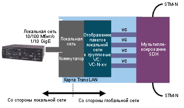 Все это позволяет реализовать недавно принятые стандарты общей процедуры синхронизации кадров (Generic Framing Procedure, GFP), группы виртуальной конкатенации (Virtual Concatenation Group, VCG) и схемы настройки емкости канала (Link Capacity Adjustment Scheme, LCAS). С их помощью операторы модулируют данные Ethernet из локальной клиентской сети таким образом, что они эффективно могут передаваться через структуру SDH. GFP приводит пакеты Ethernet разной длины в соответствие с требованиями стандартных транспортных контейнеров SDH. VCG обеспечивает гранулярное предоставление пропускной способности в сети SDH. Для этого метод объединяет различные маршруты в сети SDH в виртуальный пучок. Преимущество заключается в том, что при помощи VCG пропускная способность в сетях SDH масштабируется с меньшим шагом. Наконец, LCAS предлагает еще одну адаптированную для передачи Ethernet альтернативу традиционным защитным механизмам SDH. Она отвечает за то, чтобы высокая готовность SDH оставалась и у Ethernet. Если один из объединенных посредством VCG путей откажет, то остальные продолжат выполнять его задачи.