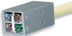Несколько иного подхода к проблеме мультимедийности придерживается компания Siemon. Ею предложен новый соединитель под маркой TERA, не базирующийся на традиционный RJ45. Контакты гнезда TERA расположены на двух уровнях: верхнем и нижнем. Два левых верхних контакта предлагаются для телевидения (если смотреть на гнездо TERA спереди). По правым верхним и нижним парам контактов будет работать компьютерная сеть, а оставшуюся левую нижнюю пару контактов рекомендовано отвести под голосовую связь (телефон). Правда, пока остается неясным, как же подключить коаксиальный тракт к этому симметричному гнезду — соответствующее устройство (балун) в документации на соединитель TERA отсутствует. К розетке TERA можно подсоединить однопарные, двухпарные и четырехпарные шнуры. Отличие TERA от EC7 состоит в том, что контакты соединителя TERA плоские, в то время как у EC7 — круглые.