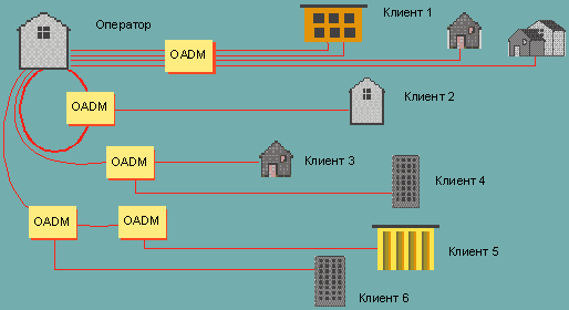 Сеть доступа Ethernet по CWDM на базе платформ METRObility — шасси R40000/ R50000 и мультиплексоров OADM в конфигурации «точка—точка» и «кольцо».