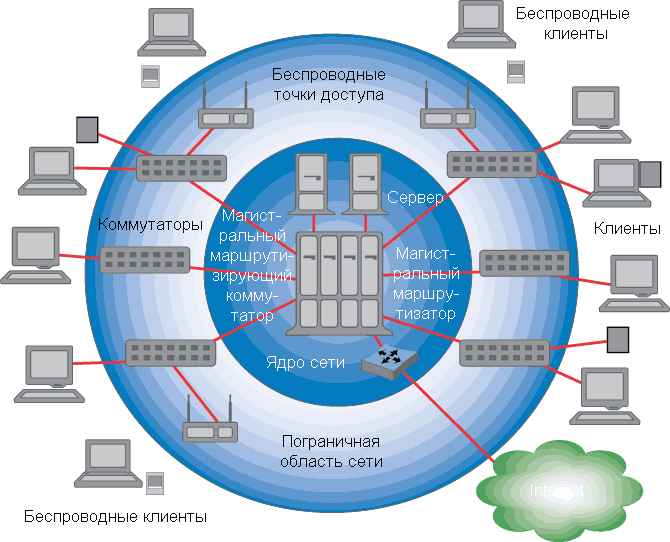 В традиционной сети решения об управлении трафиком и безопасности принимаются в ядре сети.