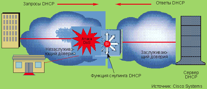 Снупинг DHCP позволяет распознать атаки, базирующиеся на DHCP, а также ошибочную конфигурацию удаленных маршрутизаторов.