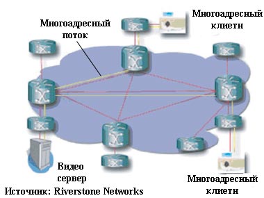 | Рисунок 3. Многоадресная рассылка при помощи HVPLS. |