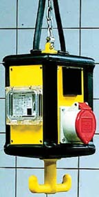 Лючки с защитой до уровня IP65 на разное число информационных и силовых розеток монтируются в цехах или на открытых площадках. Система металлических кабельных каналов заливается в бетонную стяжку (см. Рисунок 10), а верхняя съемная крышка лотка устанавливается на уровне пола. Лючки монтируются в любом месте кабельного канала. Такое решение обладает максимальной гибкостью, но и стоимость его высока. Наиболее простой вариант — подвесные розеточные модули (см. Рисунок 11), предназначенные для производственных цехов, автосервисов и т. п. Они удобны, когда коммуникации проходят в открытых лотках под потолком.