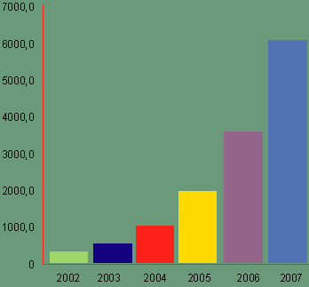 | Рисунок 1. Поставки устройств Industrial Ethernet (в тысячах штук, по прогнозам ARC Advisory Group). |