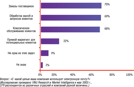 Рисунок 2. Как используется электронная почта? Применение для определенных задач.