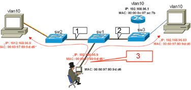 Поэтому обычно даже через (предположительно) порты доступа могут устанавливаться магистральные соединения. Если злоумышленнику удается завладеть магистралью, то он способен осуществлять следующее: