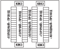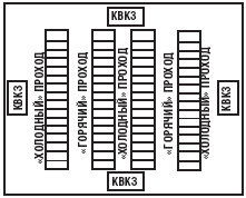 | Рисунок 6. Расположение стоек с чередованием «горячих» и «холодных» проходов. |