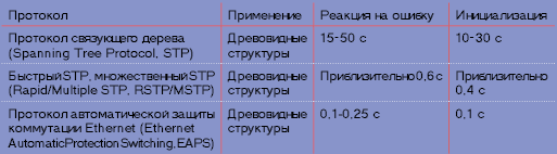Сравнение методов обеспечения избыточности на базе Ethernet в отношении времени реакции на ошибки и инициализации.
