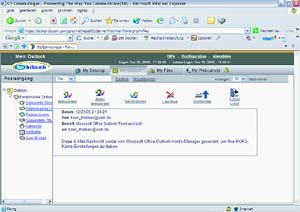 I'm Intouch 5.1 от 01 Communique предлагает новый вариант удаленного доступа. Речь идет не о том, чтобы получить доступ к нескольким персональным компьютерам для обслуживания, а о работе на определенных рабочих станциях из любого места с выходом в Internet. Наряду с функциями доступа для рабочего стола были интегрированы специальная версия HTML для Outlook (см. Рисунок 1), программа просмотра файлов и доступ к подключенным камерам Web.