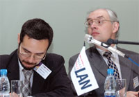 | Строим ЦОД вместе. Дмитрий Ганьжа, главный редактор «Журнала сетевых решений/LAN», и Павел Иванов, директор агентства корпоративных коммуникаций OSP-Con, за ведением конференции. |