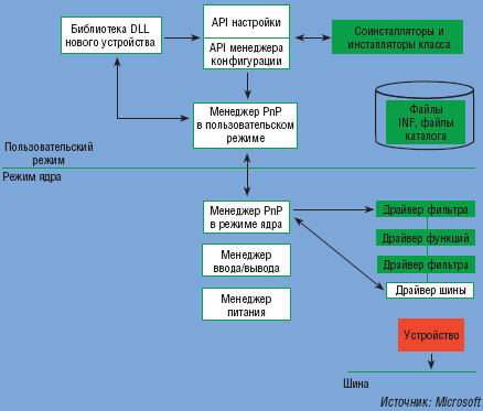 | Рисунок 1. При инсталляции устройств PnP задействуются многие программные компоненты. |