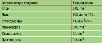 | Таблица 1. Предельно допустимые концентрации загрязняющих веществ. |
