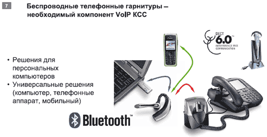 Нужно отметить, что гарнитуры, особенно беспроводные (Bluetooth и DECT), становятся неотъемлемой принадлежностью современного офиса. Пользоваться программным, мобильным, беспроводным (WiFi) VoIP-телефоном или видеотелефоном гораздо удобнее совместно с гарнитурой. Специальные варианты ТГ (см. Рисунок 7) обеспечивают возможность работы с двумя или тремя устройствами, одно из которых — программный телефон VoIP.