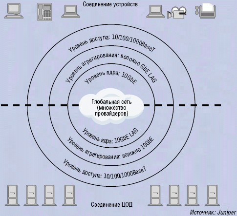 Рисунок 1. Высокопроизводительная сеть должна справляться с индивидуальными проблемами в глобальной и локальной сетях, у клиентов, а также на стороне ЦОД.