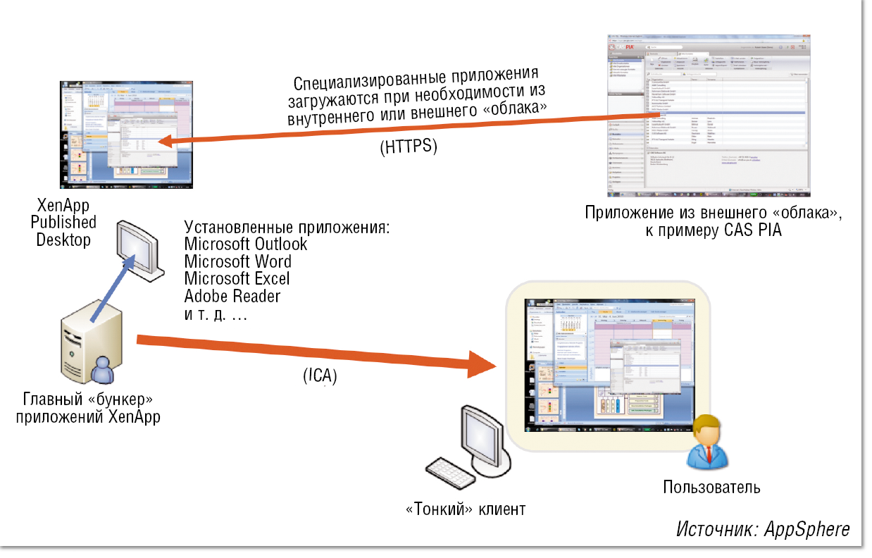 | Рисунок 2. Интеграция «облачных» приложений в решение по централизованному предоставлению приложений. |