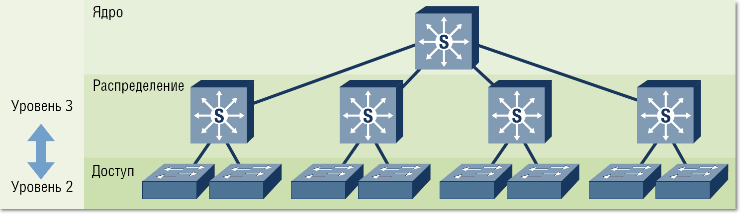 | Рисунок 3. Традиционный трехступенчатый дизайн сети. |