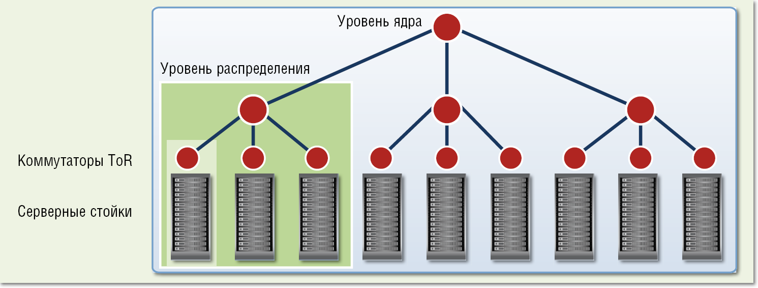 Этот трафик ограничивается одним сетевым доменом второго уровня. Виртуальная машина мигрирует вместе со своим IP-адресом и не может просто переместиться в другой сегмент IP. К тому же некоторые протоколы хранения и передачи сообщений (такие как FCoE, RoCE или PXE) ограничиваются одной областью второго уровня. Вполне очевидно, что новые сети ЦОД должны поддерживать более крупные структуры второго уровня, чем раньше. Коммуникация между стойками на третьем уровне становится невозможной.