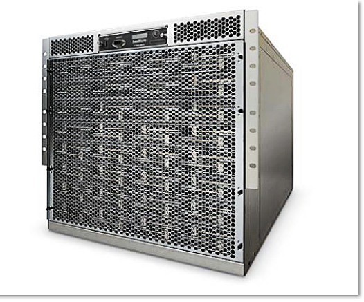 Рисунок 3. Сервер SeaMicro SM-10000 в шасси высотой 10U содержит 512 процессоров Intel Atom Intel и потребляет 2,5 кВт. Компания разработала его в рамках инициативы по использованию энергоэффективных процессоров для снижения энергопотребления в ЦОД. В условиях эксплуатации сервер SeaMicro потребляет всего 0,02 Вт на запрос HTTP, в то время как у модульных серверов HP C7000 этот показатель составляет 0,17 Вт.