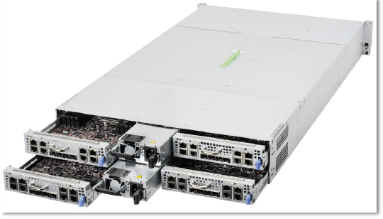 Среди новинок Supermicro — серверы 2U Twin Cubed (2015TA-HTRF) с двухъядерными процессорами Intel Atom D525 1,8 ГГц. Корпус сервера высотой 2U содержит восемь однопроцессорных серверных узлов с набором микросхем Intel ICH9R. В него на специальных «подносах» устанавливаются четыре платы (на каждой — по два серверных узла) и два резервируемых блока питания. Один сервер может содержать память емкостью до 4 Гбайт (DDR3), а в корпус вмещается до 24 жестких дисков 2,5". Каждый узел оснащается двумя гигабитными сетевыми адаптерами. Для управления можно использовать IPMI 2.0 и KVM over LAN. Система комплектуется резервируемыми (1+1) блоками питания 720 Вт Gold Level и четырьмя вентиляторами с регулируемой скоростью вращения.