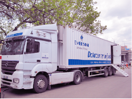 На прошедшей в Москве в середине мая конференции DataCenterForum 2011 компания Emerson Network Power продемонстрировала свой контейнерный ЦОД SmartMod. Сам факт оперативной доставки этого решения на автомобильном трейлере из Италии характеризует его главное преимущество — быстроту развертывания, что важно при организации временного ЦОД, например во время чрезвычайных ситуаций. Решение рассчитано на установку пяти стоек с оборудованием общей мощностью 30 кВт (компания выпускает также контейнерные ЦОД на 60 и 100 кВт). Модуль оснащен внутрирядной системой прецизионного охлаждения Liebert CRV, источниками бесперебойного питания Liebert APM, автоматом ввода резерва ASCO, газоанализатором и системой пожаротушения, специальным подъемным механизмом для установки тяжелого оборудования и другими необходимыми приспособлениями.