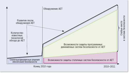 До сих пор не существует надежной защиты от атак с помощью AET, а значит, эту задачу придется решать специалистам по безопасности ИТ на предприятиях и производителям систем защиты. Так, компания Stonesoft создала сайт www.antievasion.com, который предоставляет наиболее актуальную информацию об AET и функционирует как открытое сообщество, где специалисты в области безопасности ИТ и производители могут обмениваться мнениями о способах решения проблемы. Одного только администрирования заплат или дополнения баз данных цифровых подписей уже недостаточно, ведь они не смогут справиться с динамичными шаблонами атак. Кроме того, протокол IPv6 создаст дополнительные трудности как администраторам, так и средствам безопасности.
