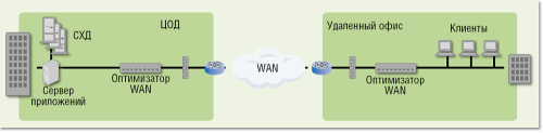 | Рисунок 1. Оптимизаторы WAN ускоряют доступ пользователей в удаленных офисах к приложениям в центральном ЦОД и позволяют им работать почти с таким же комфортом, как в локальной сети. |
