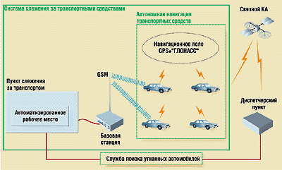 Навигационное оборудование чаще всего используется в системах слежения за местоположением транспортных средств, в которые входят мобильные объекты, пункты слежения за транспортом, диспетчерские пункты, УКВ-сети, сети сотовой и спутниковой связи (рис. 4). В настоящее время зарубежная и отечественная промышленность предлагает вполне достаточную номенклатуру GPS/«ГЛОНАСС»-приемников, различающихся числом каналов приема, скоростью обновления данных, временем вычислений, точностью определения координат и, конечно, стоимостью. С точки зрения конструктивного исполнения имеются устройства двух типов: автономные (с собственными источниками питания и средствами отображения) и в виде отдельных плат, встраиваемых в аппаратуру потребителя или ПК. Наиболее дешевый вариант — плата, которую можно совмещать с другими средствами связи (УКВ-радиостанцией, спутниковым терминалом и т.п.).