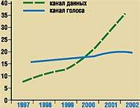 Но совершенно неоправданно рассуждать о неизбежной миграции операторов телефонной связи в сторону сетей передачи данных, отталкиваясь от приведенного графика. Ведь число голосовых каналов не уменьшается, а продолжает расти. Пусть не очень быстро, но в этом и нет острой необходимости. В целом, развитые страны (ситуацию в которых описывает график компании Dataquest) уже достаточно насыщены голосовыми каналами. Что заставит операторов телефонной связи и их клиентов отказаться от проверенных временем, высоконадежных методов передачи, обеспечивающих превосходное качество звука, в пользу «сырых» решений? Дань моде и поклонение техническому прогрессу? Вряд ли. Удешевление систем и предоставляемых услуг? Это тоже очередная иллюзия.