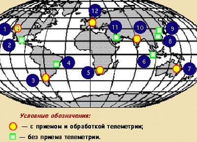 Наземная инфраструктура строится на базе сети ICONET (ICO network), которая объединяет 12 спутниковых узлов доступа SAN (Satellite Access Mode), размещенных в разных странах мира. Большинство из них уже смонтировано и готово к вводу в эксплуатацию (рис. 4). Сегмент управления системой состоит из двух центров управления полетами и двух центров управления сетью, размещенных в Лондоне и Токио. Создание российских узлов SAN первоначально планировалось в центральной части страны и в районе Новосибирска.
