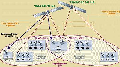 Использование в сети спутниковых каналов с временным разделением позволило на 40% сократить арендуемую полосу частот, а также существенно уменьшить затраты на развертывание узловых ЗС в 11 региональных подсистемах, имеющих большое число станций.