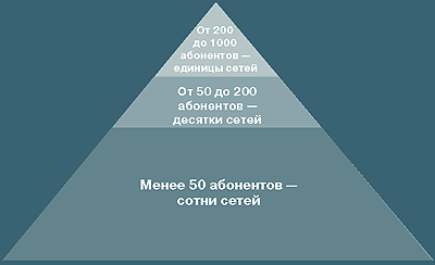 | Структура рынка домашних сетей по Москве в зависимости от числа подключенных абонентов (по данным компании «ПТТ-Телепорт») |