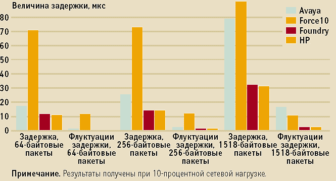 Рис. 4. Задержка и ее флуктуации при передаче трафика Gigabit Ethernet по сети 10GE