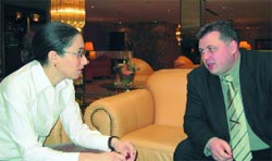 | ФАТИЯ ЛАФКАР (слева) высоко оценила работу NWG в 2003 году и отметила значительное увеличение продаж оборудования Polycom |