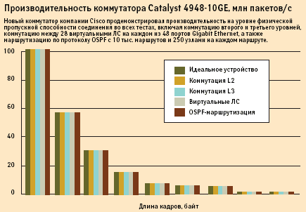 Производительность коммутатора Catalyst 4948-10GE, млн пакетов/с