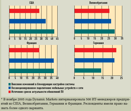 Наиболее распространенные причины взломов, %*