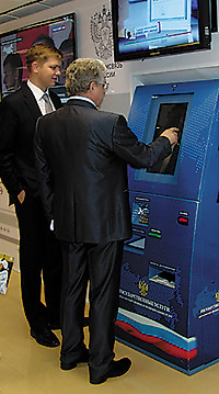 | Один из первых инфоматов был установлен 26 января в здании Совета Федерации, в ходе выставки «Инновационные компоненты информационного общества» |