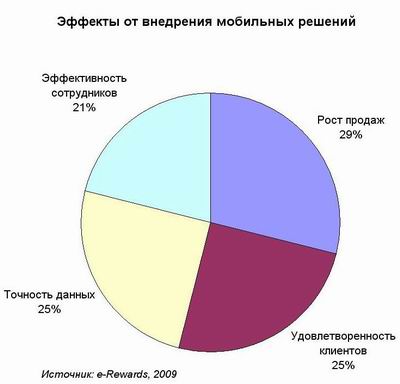 Более 70% ИТ-руководителей промышленных предприятий стремятся использовать мобильные и беспроводные решения для оптимизации рабочих процессов. Согласно результатам исследования, проведенного Taylor Nelson Sofres и e-Rewards по заказу Motorola, на предприятиях, использующих мобильные решения, экономия времени каждого из работников составляет, в среднем, 42 минуты ежедневно. Более четверти опрошенных отметили управление запасами и приложения для сотрудников в сфере продаж как наиболее важные направления инвестиций в мобильные решения. Среди производственных приложений в качестве приоритетных были названы решения для управления запасами и материалами, а также процессно-ориентированные приложения, такие как отслеживание хода работ, системы обеспечения интерфейса «человек-машина» и контроль качества. Респонденты были единодушны в том, что управление материально-техническим снабжением стало главным мобильным приложением для промышленных предприятий. Также отмечается растущий спрос на приложения по обеспечению продаж и технического обслуживания. Производственные предприятия, инвестирующие в беспроводную инфраструктуру и специализированные мобильные устройства, отмечают повышение продуктивности работы всех сотрудников, более высокий темп оборота средств, вложенных в сырьевые материалы, а также высокую точность и релевантность данных, поступающих в режиме реального времени. Более половины предприятий, продолжающих инвестиции в мобильные решения, планируют полностью окупить вложенные средства в течение 15 месяцев с момента первоначальных вложений.