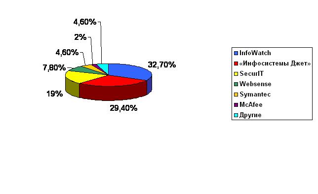 В 2009 году российский DLP-рынок лишился единоличного лидера: доля компании «Инфосистемы Джет» стала сопоставимой с показателем InfoWatch. Кроме этого, SecurIT сумела за год увеличить свою долю рынка с 15% до 19%. Западные вендоры Websense и Symantec сумели закрепиться на российском рынке, в сумме они контролируют уже 12% рынка (против 5% в 2008 году). Несмотря на это, тройка лидеров продолжает занимать более 80% рынка.
