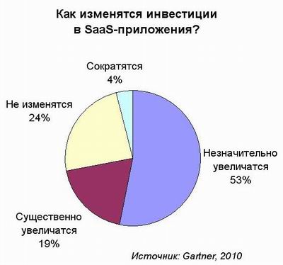 Подавляющее число организаций в нынешнем году увеличит или, по крайней мере, не уменьшит объем использования SaaS-решений. Как полагают в Gartner, это говорит о том, что компании в целом удовлетворены как самой моделью аренды приложений, так и функционалом предлагаемых решений. Приложения SaaS уже не воспринимаются западными компаниями как новая модель приобретения ИТ-решений. Многие организации используют подобные продукты уже несколько лет. Наиболее популярными областями аренды приложений являются электронная почта, управление финансами, автоматизация продаж и CRM. Треть всех рынка SaaS-решений аккумулируется именно в их рамках.