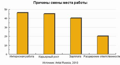 В последнее время произошли значительные изменения в списке самых востребованных специалистов. Так, в связи с возобновлением замороженных проектов и стартом новых, вновь востребованы консультанты и менеджеры проектов по внедрению SAP. Стабильно высок спрос на разработчиков Java и бизнес-аналитиков – эти специалисты по-прежнему в дефиците. Компании готовы предлагать кандидатам на большинство позиций тот уровень зарплат, который держался до осени 2008 года. Кандидаты ощущают эти изменения и возвращаются к своим прежним зарплатным ожиданиям. Тем не менее, согласно результатам опроса, основными причинами для смены работы ИТ-специалистами являются более интересные задачи на новом месте работы и возможности карьерного развития. Более высокий уровень дохода в списке приоритетов занял лишь третье место.