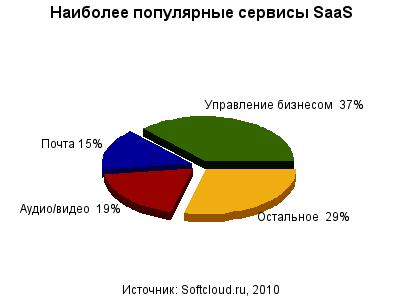 Результаты исследования, проведенного Softcloud, показали, что в данный момент наибольше количество запросов на решения SaaS приходится на сервисы, входящие в направление «управление бизнесом». К этой категории относятся бухгалтерия, склад, ресурсы и процессы, задачи и проекты, техническая поддержка, продажи и контакты, маркетинг и реклама. Этот показатель достаточно высок из-за того, что такие продукты достаточно хорошо представлены на рынке, их процент от общего количества сервисов составляет около 37%.