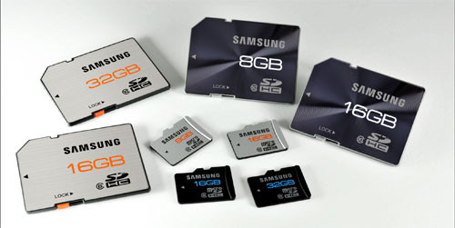 Компания Samsung анонсировала линейку высокоскоростных карт памяти стандарта SD класса 10 - высшей скоростной категории для SD-карт на сегодняшний день. Коллекция включает в себя 12 видов карточек, включая стандартные SD для цифровых камер и microSD для телефонов и смартфонов. Скорость чтения достигает 24 мегабайт в секунду, скорость записи - 10 мегабайт в секунду. Доступные объемы - 2, 4, 8, 16 и 32 Гбайт.