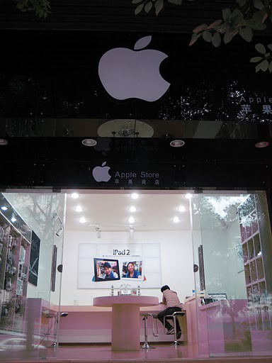 Об этой истории написала девушка-блоггер по имени Джессика, что живет в Kunming. Когда она увидела этот Apple Store, то приняла все за чистую монету. Вывеска как у Apple, плакаты как в магазинах Apple, логотипы как в магазинах Apple, прилавки как у Apple, в конце концов - ассортимент как у Apple. Даже сотрудники были одеты в узнаваемые синие футболки с фирменными "эппловскими" бейджиками.