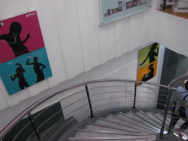 Однако в процессе прогулки по магазину у девушки возникли подозрения. Во-первых, ее удивила основная вывеска - Apple никогда не пишет "Apple Store", а лишь оставляет узваемое яблочко. На бейджиках продавцов не было имен, только безликая надпись "Stuff". Винтовая лестница в магазине была покрашена очень неопрятно, чего перфекционисты из Apple никогда бы не допустили. Ну и главное - официальный сайт Apple нигде не сообщает о том, что в мелком городке Kunming вдруг открылся их официальный магазин.