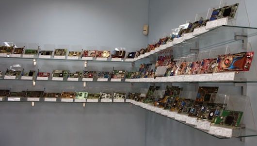В марте нынешнего года в Харькове открылся музей графических плат, насчитывающий свыше 200 экспонатов. К каждой графической плате прилагается полный перечень ее спецификаций, информация о годе выпуска и об особенностях игр, с которыми она может проявить себя во всем блеске. А между тем, начиналось все довольно скромно. Первый компьютер у основателя музея (его ник — Sadr, а имя — Александр) появился в 1998 году. В нем была установлена графическая плата S3 Graphics ViRGE/DX C. С тех пор энтузиаст игр для ПК и начал собирать графические платы. Со временем коллекция выросла, и в 2010 году Александр решил открыть в местном компьютерном магазине частную выставку. Поначалу экспозиция состояла из 35-40 собственных графических плат Александра. Посетители вносили собственные пожертвования, и к моменту закрытия выставки коллекция насчитывала уже 50 плат. Вдохновленные успехом, организаторы решили открыть экспозицию на постоянной основе. А дополнительным стимулом для посетителей, согласившихся пополнить постоянно растущую коллекцию, стали скидки, предоставляемые им в компьютерном магазине.