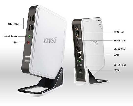 Новый неттоп MSI Wind Box DC100 представляет собой компактный настольный ПК, построенный на платформе AMD Brazos, обладающий небольшими габаритами - 191,8 х 150,93 х 34.94 мм и весом 830 грамм. В нем используется гибридный двухядерный процессор AMD E-450 с частотой 1,65 ГГц, с графикой дискретного уровня AMD Radeon HD 6320. За счет небольшого энергопотребления процессора – 18 Вт, общие энергозатраты неттопа также не высоки – около 40 Вт. Объем оперативной памяти неттопа составляет 2 Гбайт и может быть расширен до 4 Гбайт, для хранения данных используется жесткий диск форм-фактора 2, 3 дюйма емкостью 320 Гбайт и скоростью вращения шпинделя 5400 оборотов в минуту.