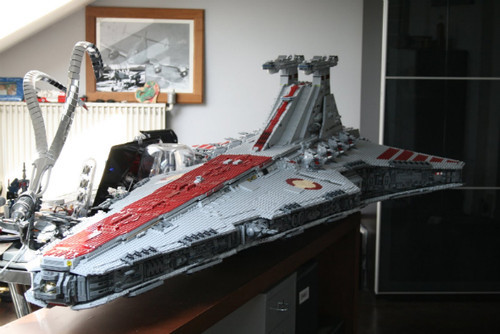 Масштаб копии 1:465, она изготовлена из 43280 блоков Lego, а ее вес 81 кг. Модель воспроизводит оригинал во всех деталях, — у нее есть турболазеры, субсветовые двигатели и нижние отсеки, закрытые люками.