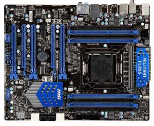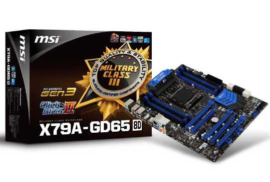 Топовая плата MSI X79A-GD65 (8D) снабжена 8 слотами DDR3, что позволяет нарастить объем оперативной памяти до 128 Гбайт. В ней насчитывается 6 слотов PCI-Express (пять PCI-Express x16 и один PCI-Express x1) и поддерживаются технологии SLI и CrossFireX. Кроме того, в плате также предусмотрено 8 портов SATA (4 SATA II со скоростью до 3 Гбайт/сек и 4 SATA III со скоростью до 6 Гбайт/сек).
